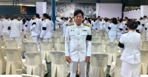 เจ้าหน้าที่ ร่วมพิธีจุดเทียนถวายพระพรชัยมงคล สมเด็จพระนางเจ้าฯ พระบรมราชินี เนื่องในโอกาสวันเฉลิมพระชนมพรรษา ณ สนามหน้าศาลากลางจังหวัดชลบุรี มิถุนายน 5, 2025