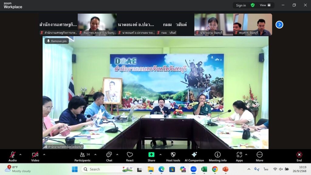 สศท.6 ประชุมแนวทางการจัดทำคู่มือการสำรวจไม้ผลเศรษฐกิจ โดยวิธีการตั้งแปลงเก็บเกี่ยวผลผลิต (Crop Cutting) เพื่อเพิ่มประสิทธิภาพการจัดทำข้อมูลประมาณการผลผลิตไม้ผลภาคตะวันออก