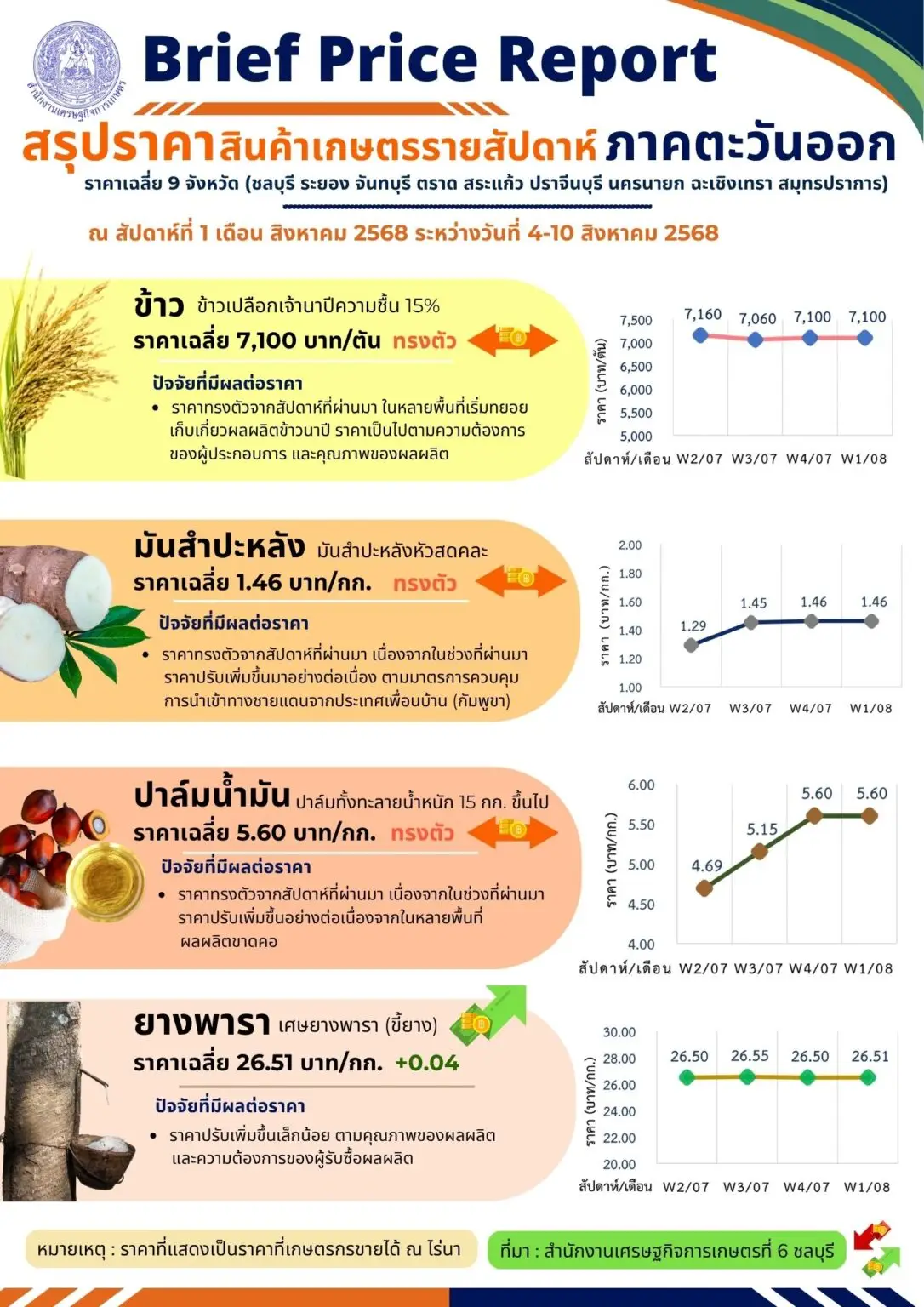นางสาวนริศรา เอี่ยมคุ้ย ผอ.สศท.6 เผยว่า สศท.6 ได้ทำการศึกษาแนวทางประกันภัยสินค้ายางพาราในพื้นที่ 7 จังหวัดภาคตะวันออก ได้แก่ ชลบุรี ระยอง จันทบุรี ตราด สระแก้ว ปราจีนบุรี ฉะเชิงเทรา